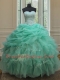 Three Piece Turquoise Ball Gowns Sweetheart Sleeveless Organza Floor Length Lace Up Beading and Ruffles and Pick Ups Ball Gown Prom Dress