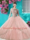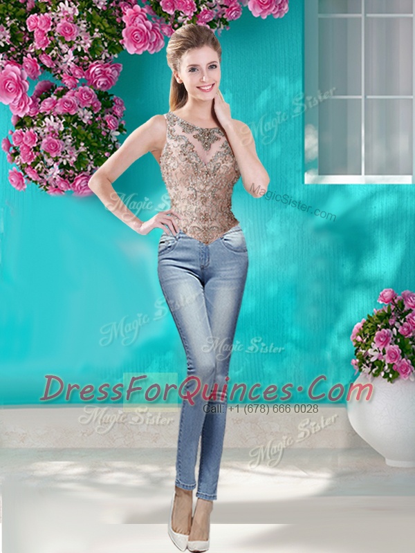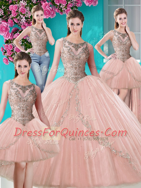 Traditional Four Piece Scoop Sleeveless Lace Up Floor Length Beading and Appliques Ball Gown Prom Dress