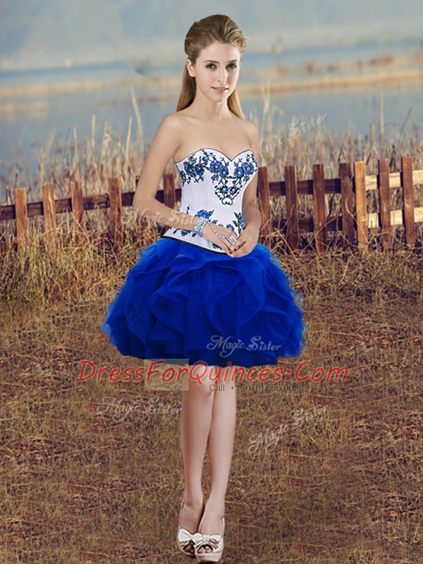 Tulle Sweetheart Sleeveless Lace Up Embroidery and Ruffles and Bowknot Quinceanera Gowns in Royal Blue