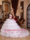 White Ball Gown Strapless Detachable Train Organza Appliques Quinceanera Dress