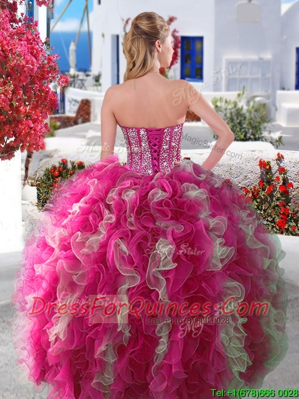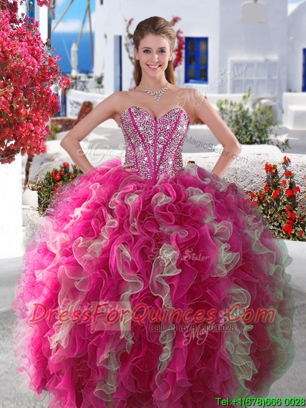 Wonderful Big Puffy Beaded and Ruffled Detachable Quinceanera Dresses in Organza