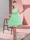 Apple Green Chiffon Side Zipper Scoop Sleeveless Knee Length Dama Dress for Quinceanera Lace and Bowknot