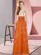 Attractive Sleeveless Floor Length Appliques Backless Quinceanera Dama Dress with Orange Red