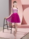 Captivating Mini Length Fuchsia Quinceanera Dama Dress Bateau Sleeveless Zipper