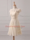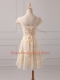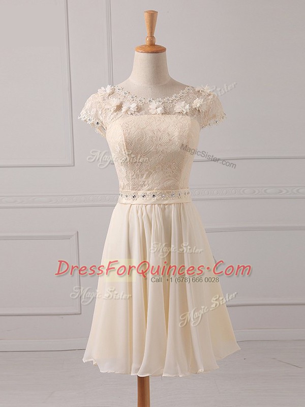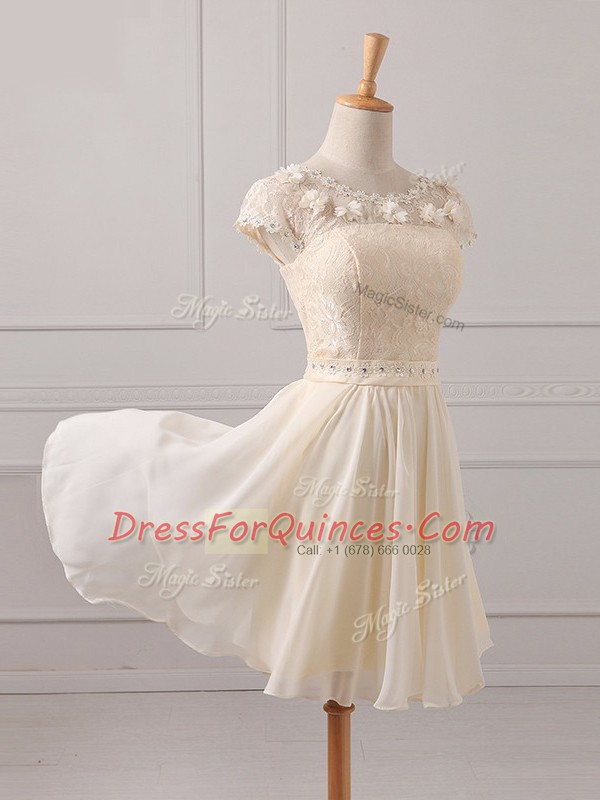 Champagne Empire Scoop Cap Sleeves Chiffon Mini Length Lace Up Lace and Appliques Dama Dress for Quinceanera
