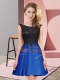 Chic Lace Quinceanera Dama Dress Royal Blue Zipper Sleeveless Mini Length