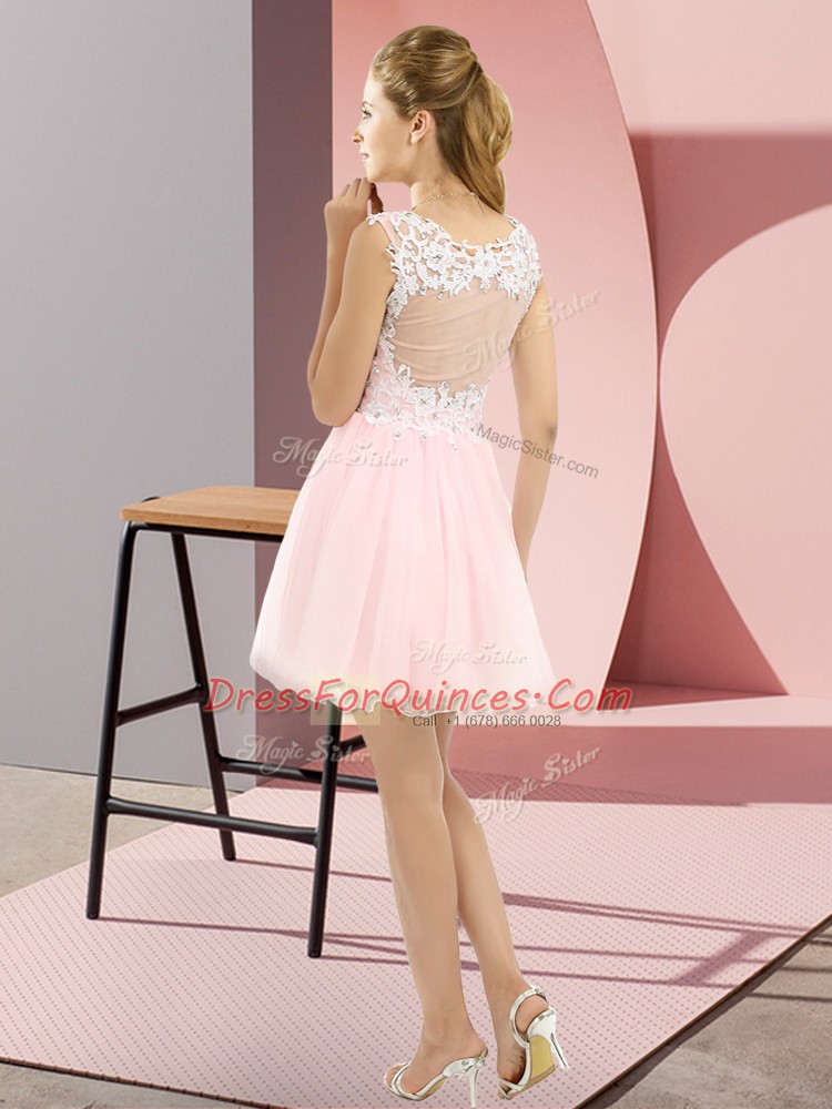 Fantastic V-neck Sleeveless Lace Up Court Dresses for Sweet 16 Baby Pink Tulle