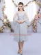 Fashionable Grey Quinceanera Dama Dress Wedding Party with Lace and Belt Scoop Sleeveless Lace Up