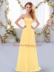 Floor Length Empire Sleeveless Gold Dama Dress Lace Up