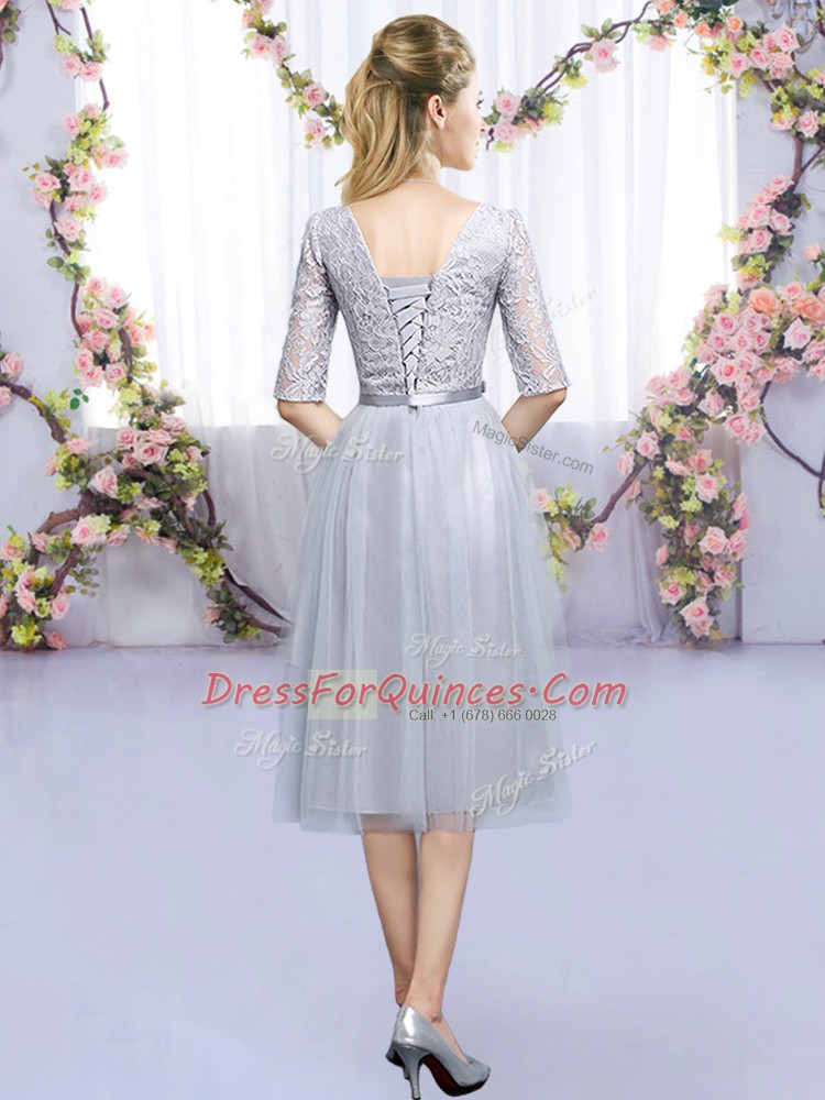 Grey Half Sleeves Tulle Lace Up Quinceanera Dama Dress for Wedding Party