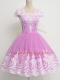 Hot Sale Tulle Cap Sleeves Knee Length Quinceanera Dama Dress and Lace