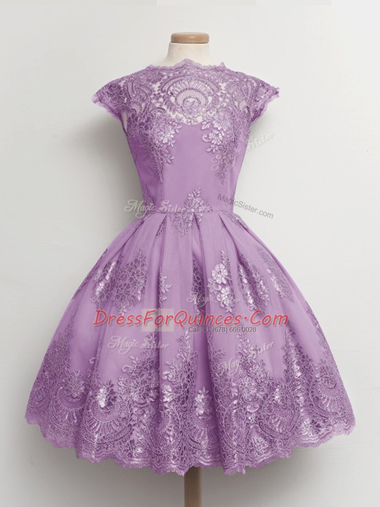 Ideal Lavender Scalloped Lace Up Lace Quinceanera Dama Dress Cap Sleeves