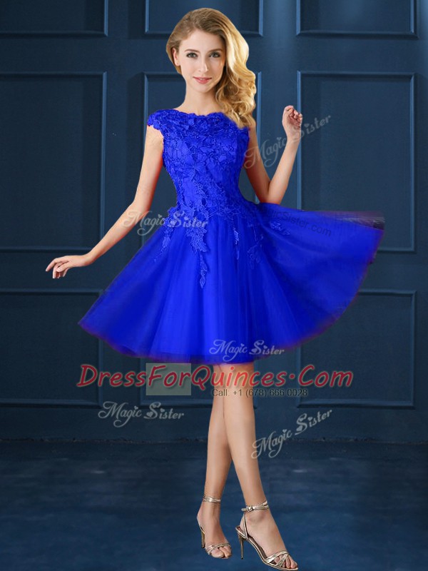 Knee Length A-line Cap Sleeves Blue Dama Dress Lace Up