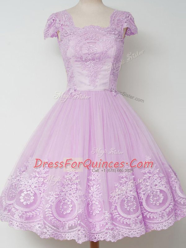 Knee Length Zipper Damas Dress Lilac for Prom and Party and Wedding Party with Lace