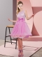 Lace and Bowknot Quinceanera Court of Honor Dress Rose Pink Side Zipper Sleeveless Knee Length