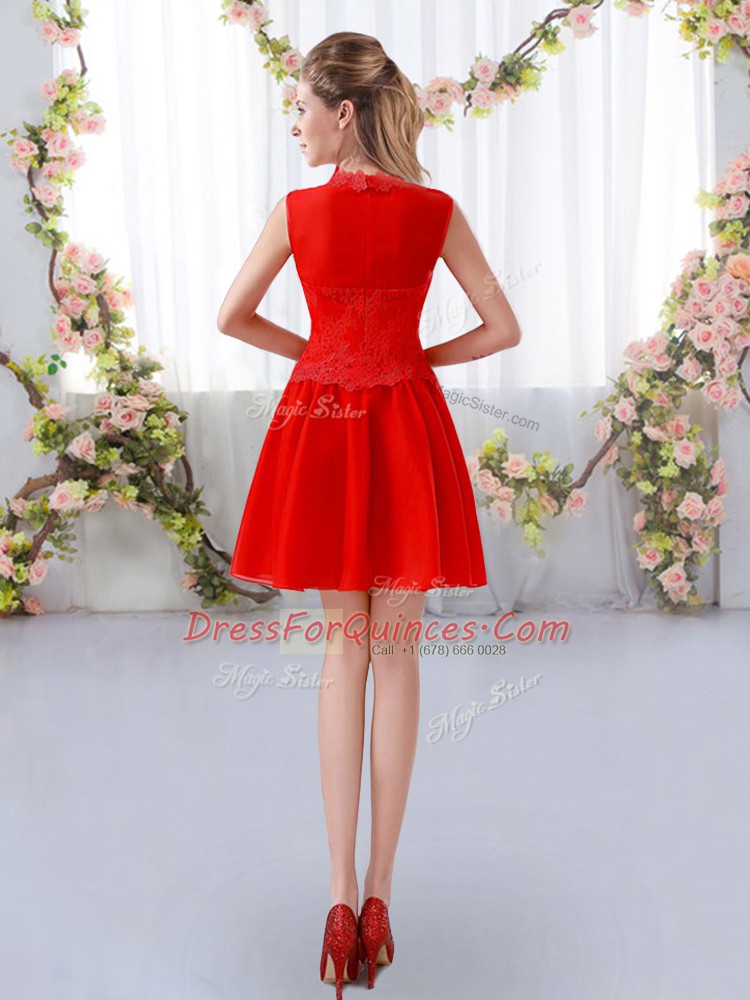 Lace Damas Dress Red Zipper Sleeveless Mini Length