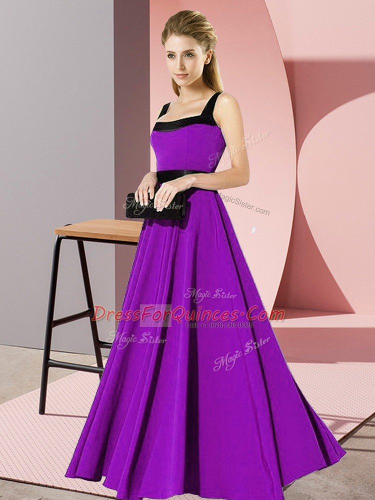 Luxurious Empire Dama Dress Purple Square Chiffon Sleeveless Floor Length Zipper