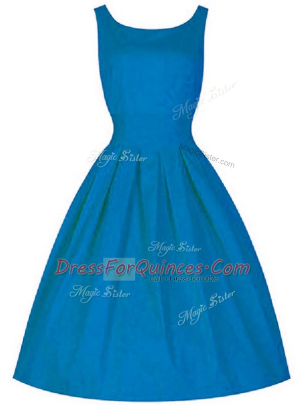 Luxury Blue A-line Taffeta Scoop Sleeveless Ruching Knee Length Zipper Quinceanera Court Dresses