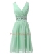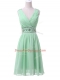 On Sale Apple Green Empire V-neck Sleeveless Chiffon Knee Length Zipper Beading and Ruching Vestidos de Damas