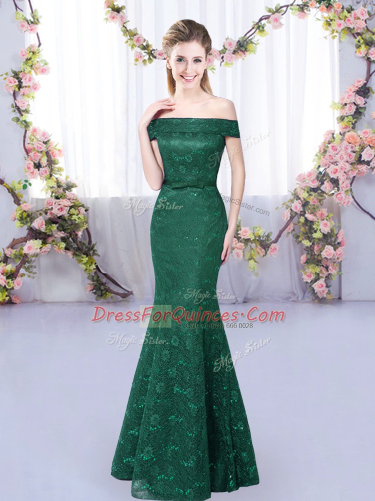 On Sale Mermaid Quinceanera Dama Dress Dark Green Off The Shoulder Sleeveless Floor Length Lace Up