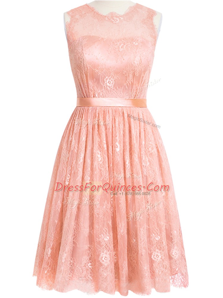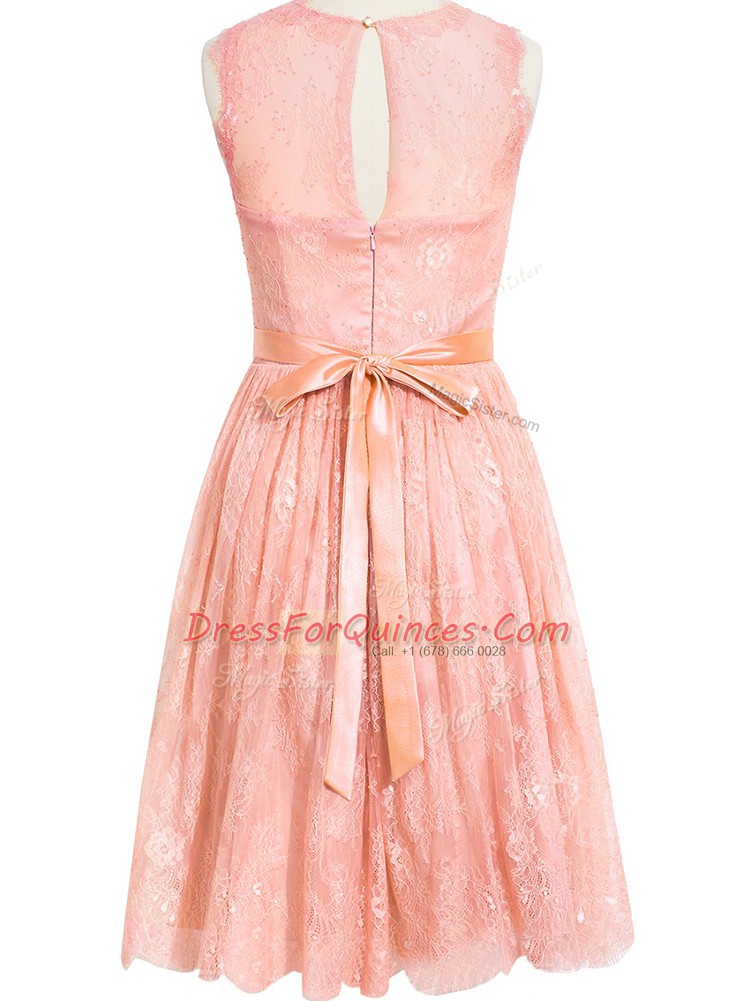 Peach Quinceanera Court Dresses Prom and Party and Wedding Party with Lace Scoop Sleeveless Zipper