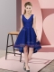 Perfect A-line Damas Dress Royal Blue V-neck Lace Sleeveless High Low Zipper