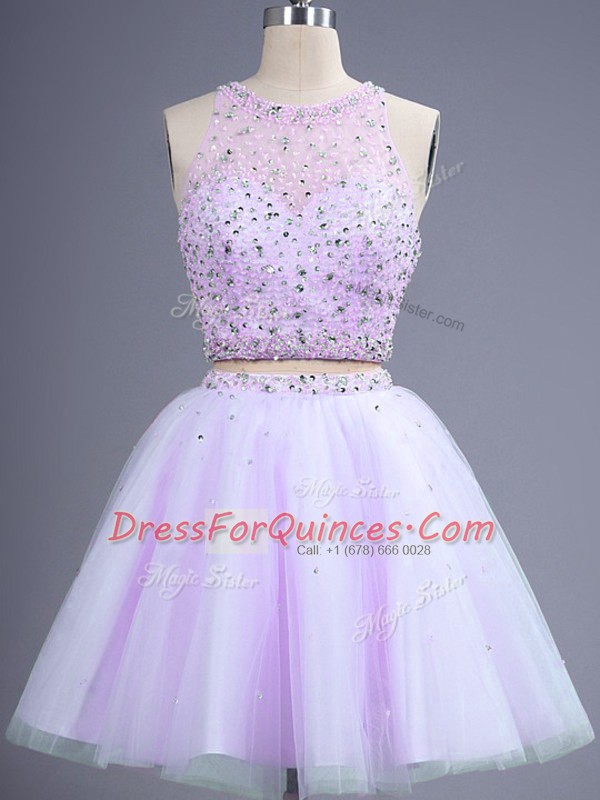 Perfect Knee Length Two Pieces Sleeveless Lavender Court Dresses for Sweet 16 Lace Up
