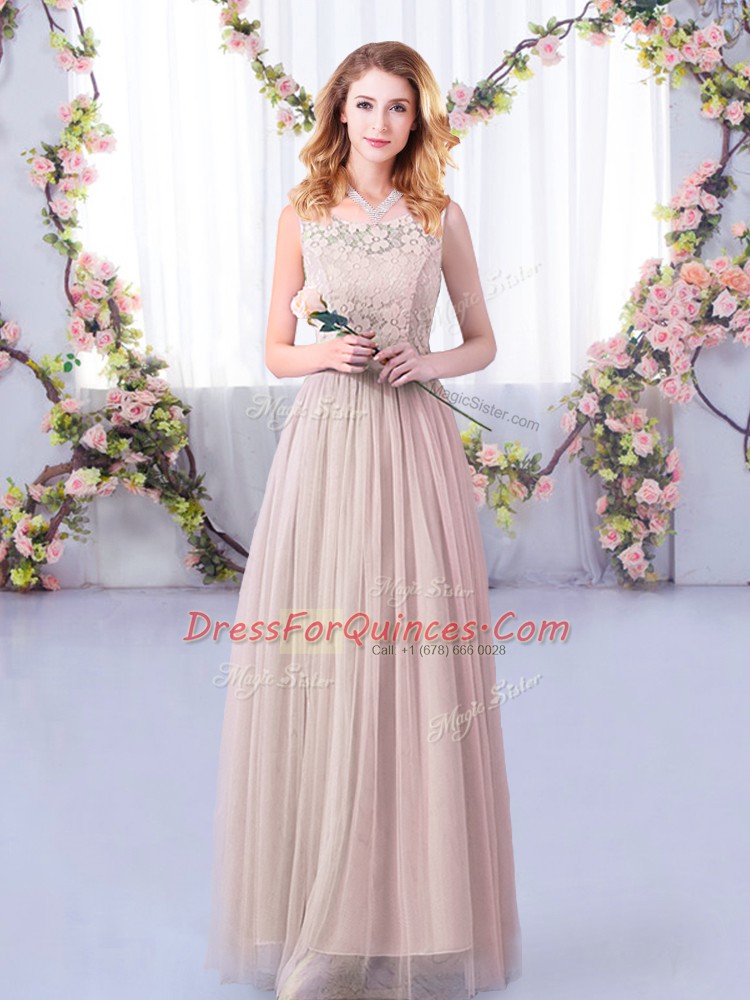 Pink Sleeveless Floor Length Lace and Belt Side Zipper Quinceanera Dama Dress