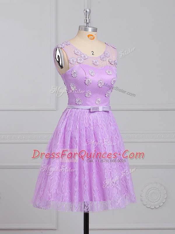 Popular Lace Scoop Sleeveless Lace Up Appliques and Belt Vestidos de Damas in Lilac