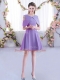 Ruching Quinceanera Court of Honor Dress Lavender Zipper Half Sleeves Mini Length