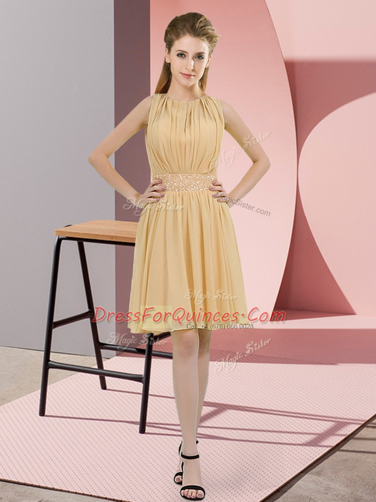Scoop Sleeveless Dama Dress for Quinceanera Knee Length Sequins Champagne Chiffon