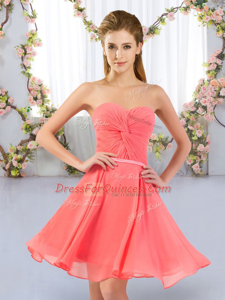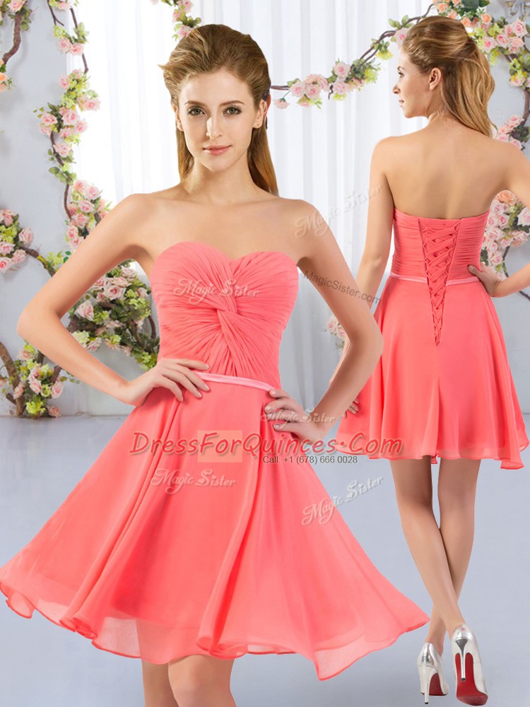 Sleeveless Lace Up Mini Length Ruching Quinceanera Court Dresses
