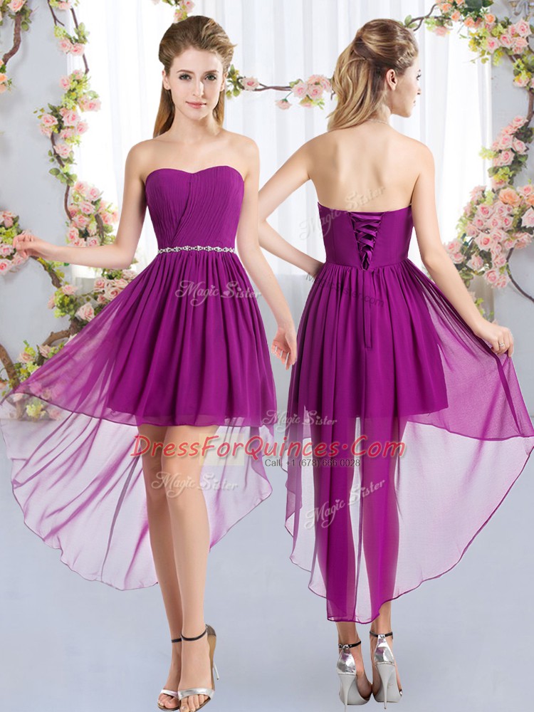 Sophisticated Purple Empire Beading Damas Dress Lace Up Chiffon Sleeveless High Low