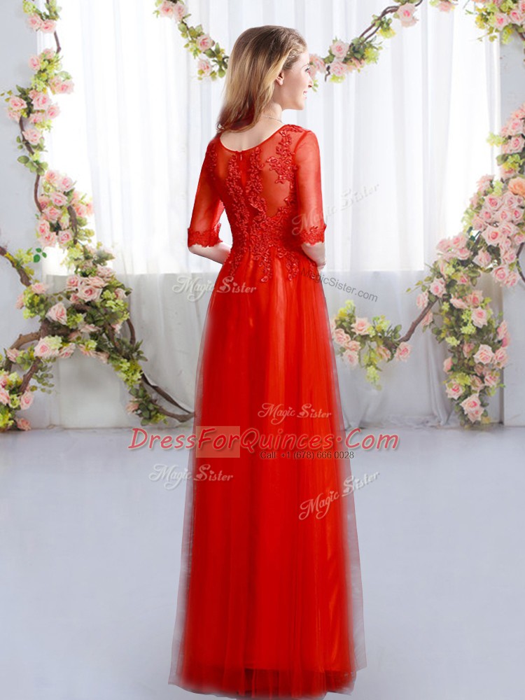 Stylish Floor Length Empire Half Sleeves Red Dama Dress for Quinceanera Zipper