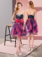 Stylish Multi-color Organza Lace Up Quinceanera Court of Honor Dress Sleeveless Mini Length Beading and Ruffles and Bowknot