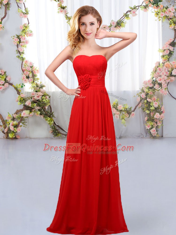 Sweetheart Sleeveless Lace Up Dama Dress Red Chiffon