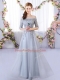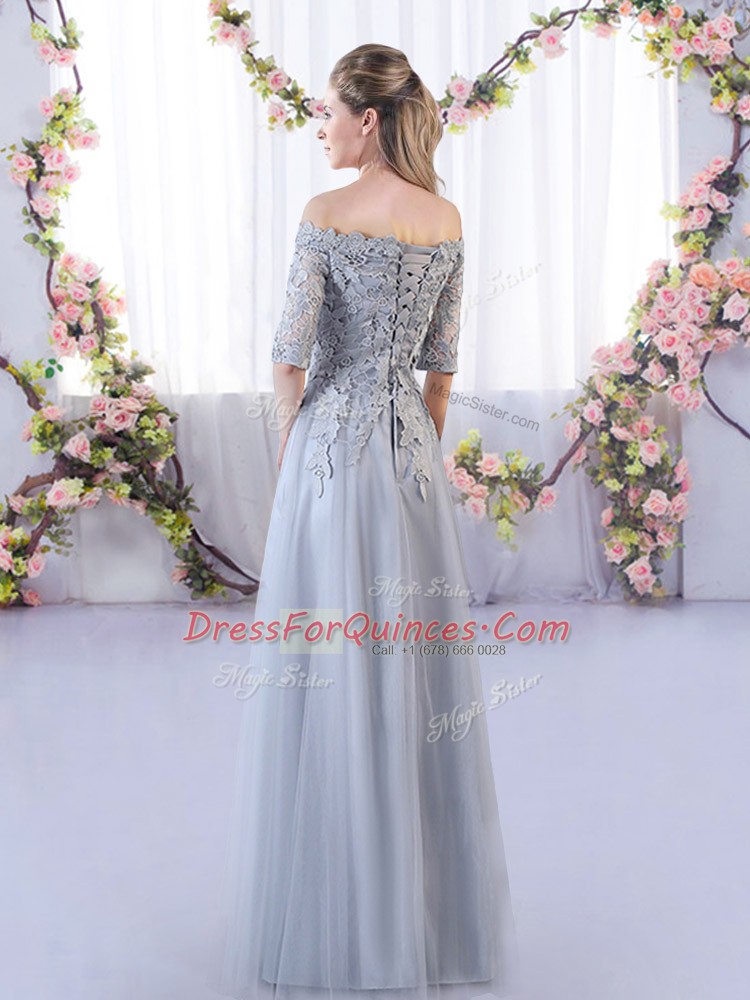 Traditional Half Sleeves Tulle Floor Length Lace Up Quinceanera Court Dresses in Grey with Appliques