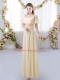 Trendy Floor Length Light Yellow Dama Dress for Quinceanera Scoop Short Sleeves Zipper