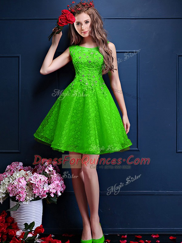 Tulle Lace Up Bateau Sleeveless Knee Length Vestidos de Damas Beading and Lace