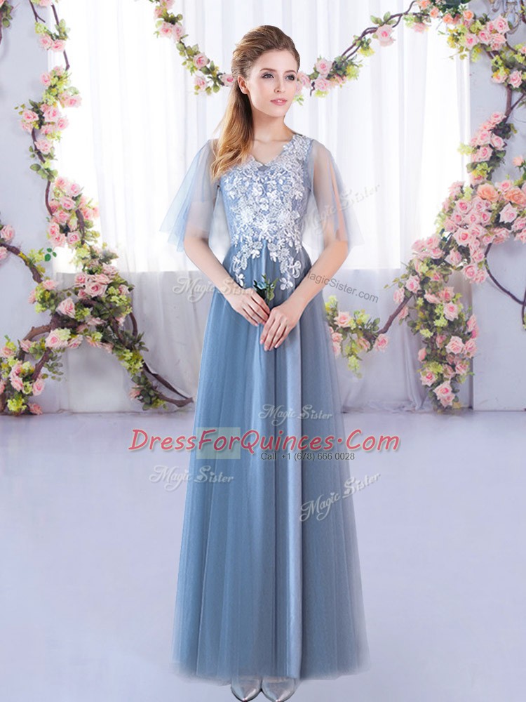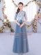 Vintage Blue Scoop Neckline Lace Court Dresses for Sweet 16 Half Sleeves Lace Up