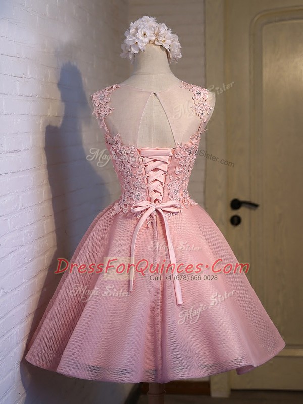 White Ball Gowns Scoop Sleeveless Organza Mini Length Lace Up Lace Vestidos de Damas