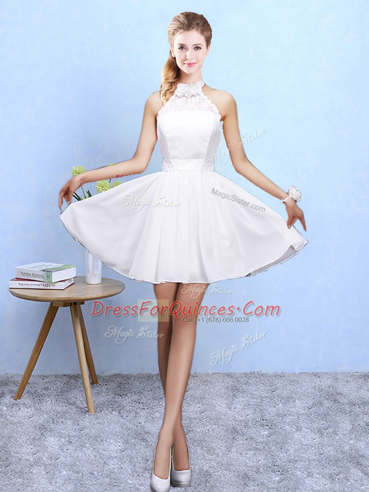 White Vestidos de Damas Beach and Wedding Party with Lace Halter Top Sleeveless Lace Up