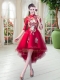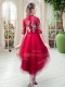 A-line Evening Dress Red High-neck Tulle Half Sleeves High Low Zipper