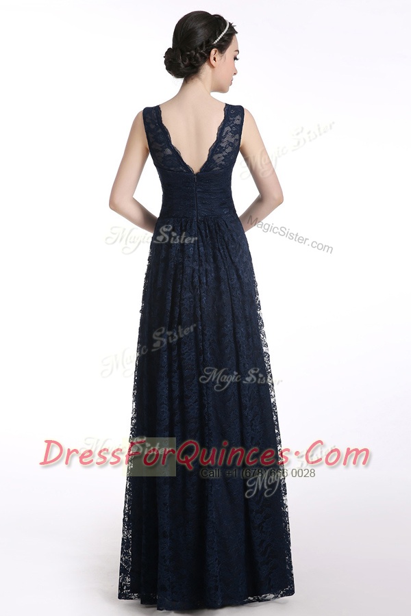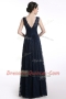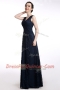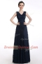 A-line Prom Party Dress Black V-neck Chiffon Sleeveless Floor Length Zipper