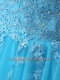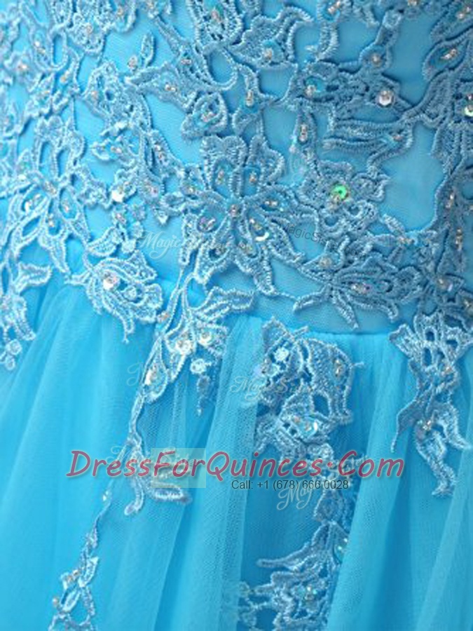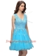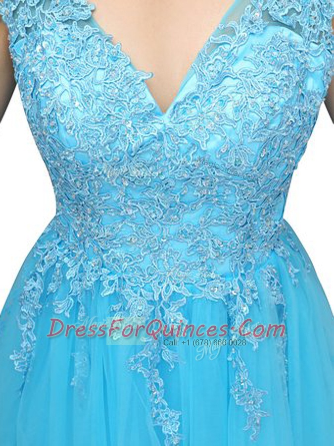 Baby Blue A-line Organza V-neck Sleeveless Beading and Appliques Knee Length Backless Homecoming Dress