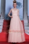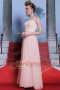 Baby Pink Column/Sheath Chiffon Scoop Sleeveless Lace Floor Length Side Zipper Homecoming Dress