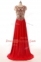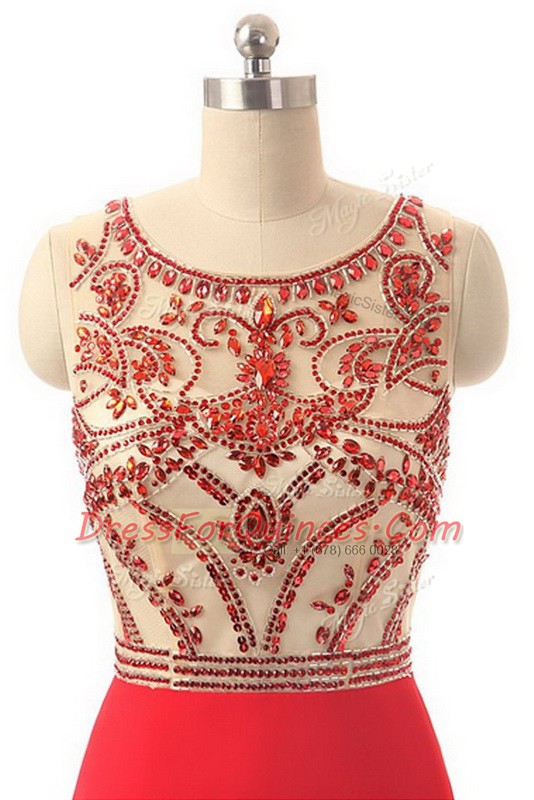 Captivating Empire Sleeveless Red Brush Train Side Zipper