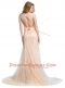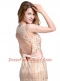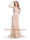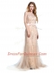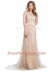 Champagne Prom Evening Gown Prom and Party and For with Beading Scoop Sleeveless Brush Train Backless
