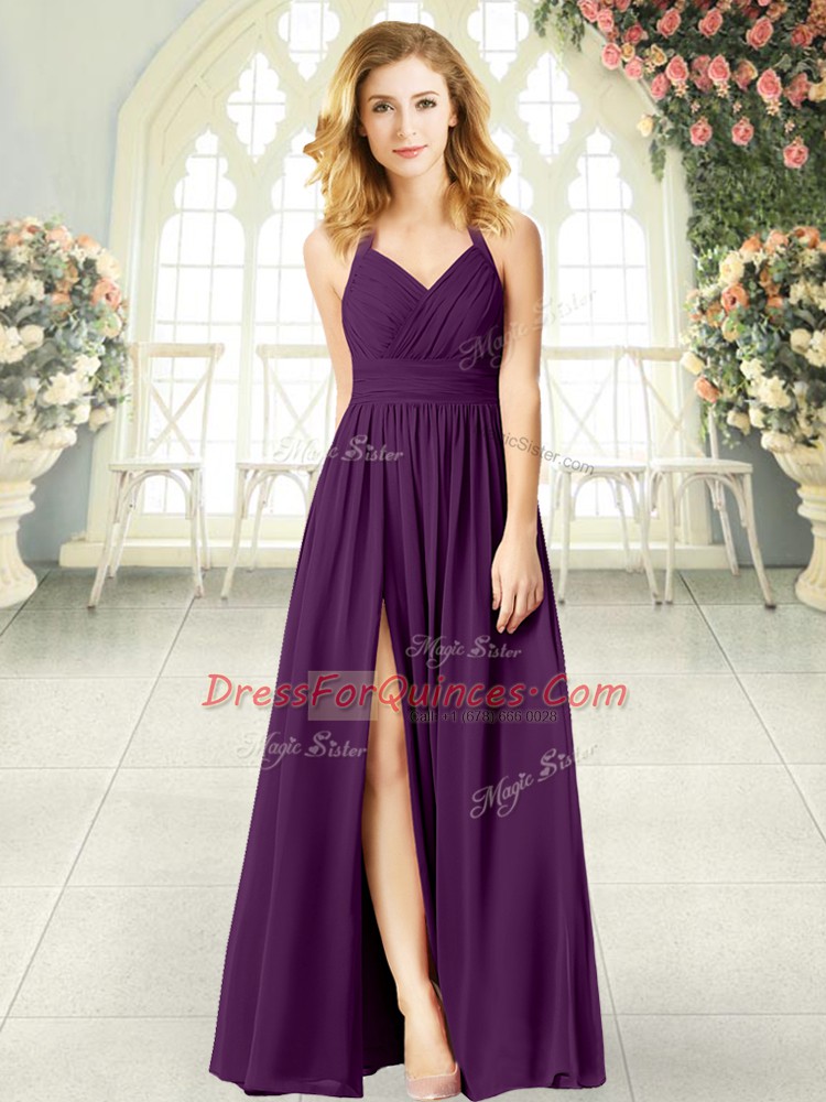 Chic Purple Halter Top Backless Ruching Sleeveless