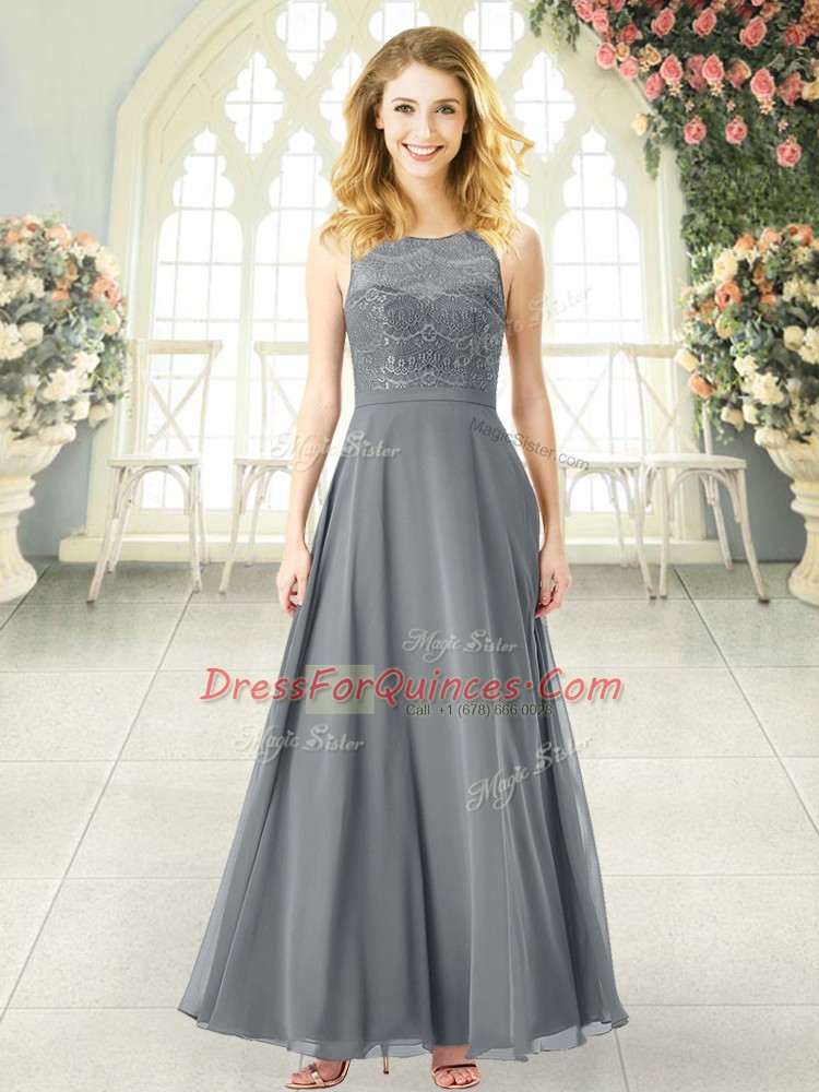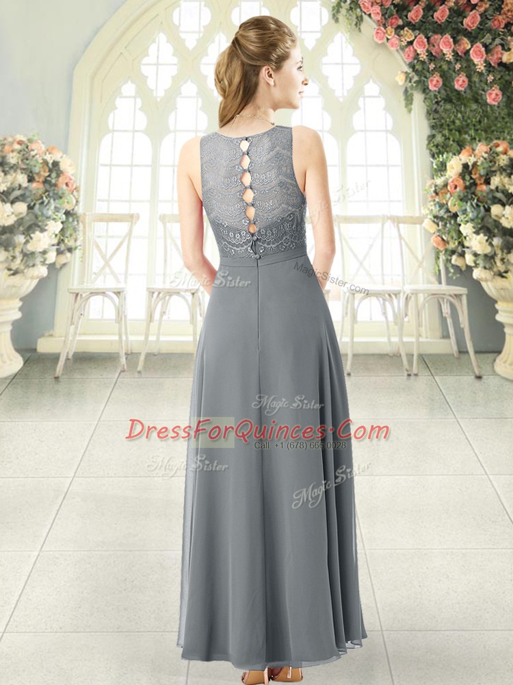 Clearance Grey Scoop Clasp Handle Lace Prom Evening Gown Sleeveless